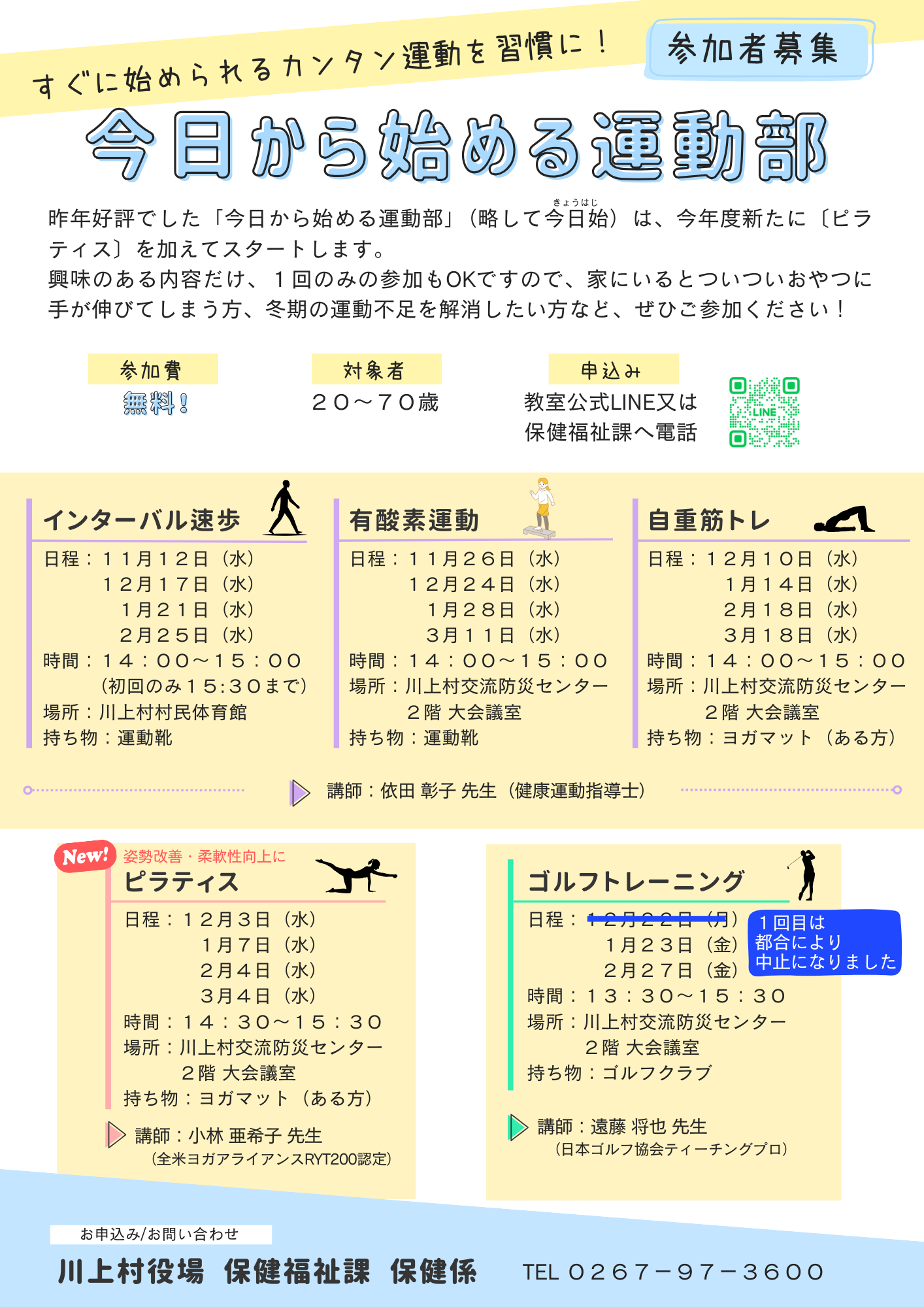 なお、ゴルフトレーニングの12月22日の回は、都合により中止になりました。